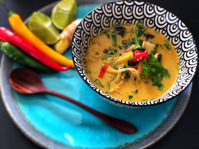 Tuhle thajskou polévku bych mohla jíst denně. Nikdy jsem si nemyslela, že je tak jednoduchá. Jen některé ingredience asi nebude úplně lehké sehnat, já je koupila v Sapě. Udělala jsem vege verzi bez masa, ale naprosto skvělá je s krevetami. Zkuste ji, je to exploze chutí.